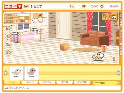 ニコペメイン画面の部屋は、家具や壁紙などを自由に配置してコーディネートを楽しむことができます。なんと設計図と素材で自分で家具を作ることもできます。