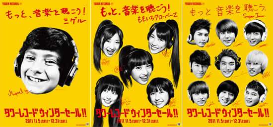 『もっと、音楽を聴こう』をコンセプトに、アーティストとコラボレーションして制作された今回の「TOWER RECORDS WINTER SALE 2011」のキャンペーン・ビジュアル。第1弾では、きゃりーぱみゅぱみゅ、水樹奈々、吉井和哉、そして今回発表された第2弾では、SUPER JUNIOR、ミゲル、ももいろクローバーZとコラボレーション。第1弾、第2弾ともに、キャンペーン・ポスターおよび、期間限定でタワーレコード全店(オンライン除く)にて購入額3,000円(税込)ごとに1枚もらえる“タワレカード2011・ウィンターセール・バージョン”に使用される。