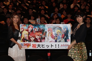 9月18日の新宿バルト9、シアター6には大勢の『ネギま!』『ハヤテ』のファンが詰めかけ、ゲスト声優の登場を待っている。そして19時丁度に司会が登壇し趣旨を説明。その後本日のゲスト声優、白石涼子さん、浅野真澄さんを呼び込み、会場のテンションはウナギ登り。ファンと一緒に映画を観る前の気持ちを司会から振られそれぞれ一言。