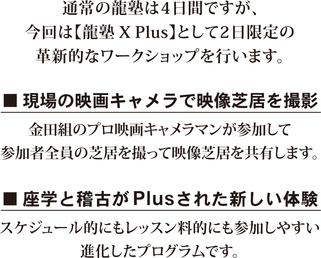 <シネマワークショップ「龍塾 X Plus」受講生募集中!>