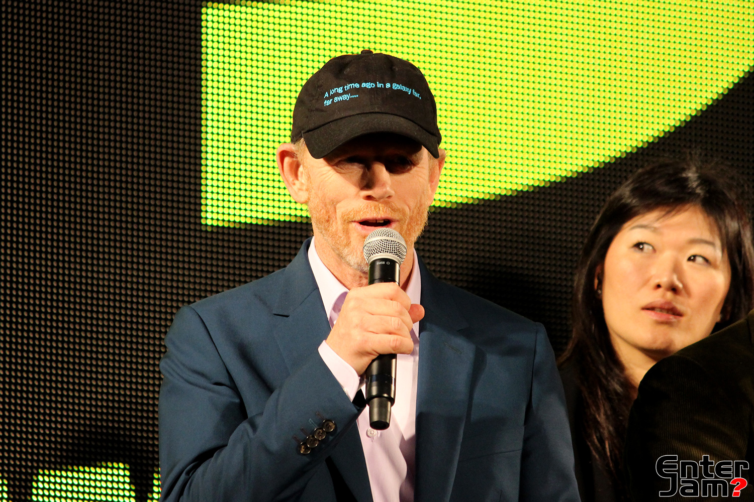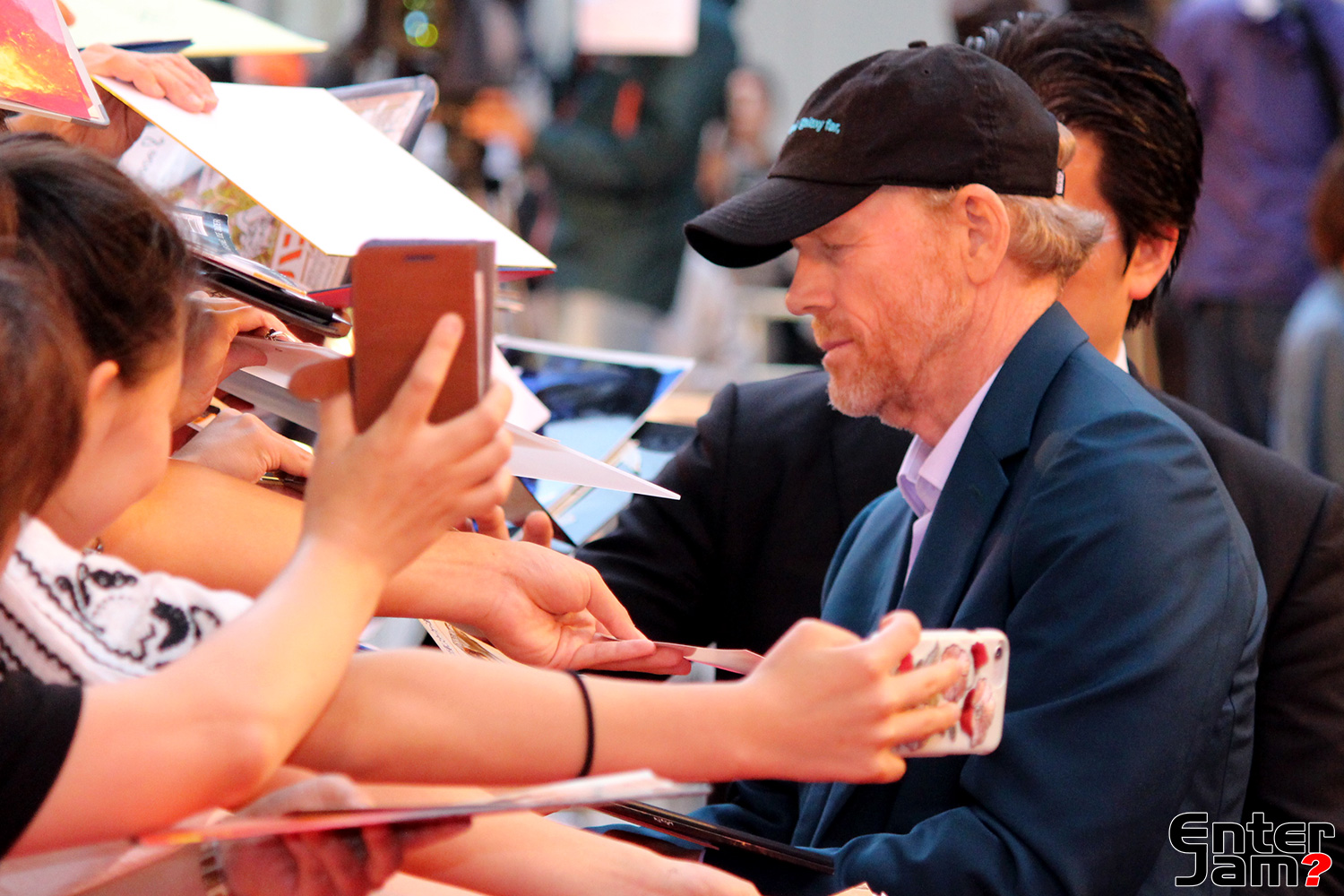 そして本作の監督を務めたロン・ハワード、若きハン・ソロを演じたオールデン・エアエンライク、チューバッカが到着すると会場に駆けつけたファンたちのボルテージは一気に最高潮に。サインやツーショット写真を貰おうとエキサイトしたファンが柵に身を乗り出し、ロン監督もオールデンも快く応対し、目的を達成した人は歓喜の声を上げていた。特にユニークだったのはロン監督のキャップの模様。ここには「A long time a go in a galaxy far far away....」という『スター・ウォーズ』全作品共通の冒頭シーンに書かれるテロップが印字されており、ファン心を大いにくすぐったに違いない。