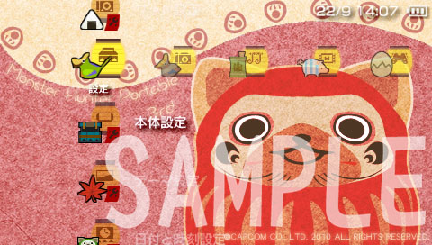 アイルーダルマなどユクモ村の素材をあしらったカスタムテーマが配信されている。