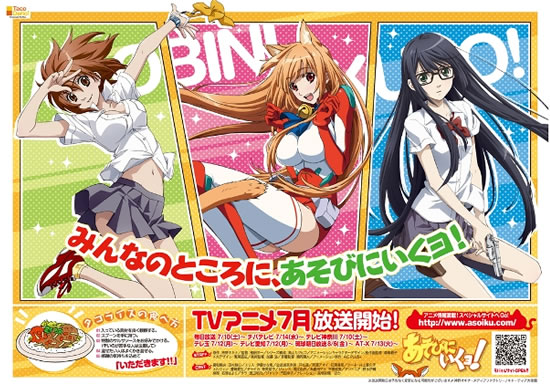 7月10日より毎日放送ほかにて放送がスタートしている沖縄が舞台のSFラブコメディアニメ「あそびにいくヨ!」の放送を記念してタコス、タコライスでお馴染みのタコデリオさんのお店のトレイマットが期間限定であそびにいくヨ!仕様になっちゃうヨ!是非とも近くにあるタコデリオのお店にあそびにいって一足先に沖縄気分をあじわっちゃおうヨ!