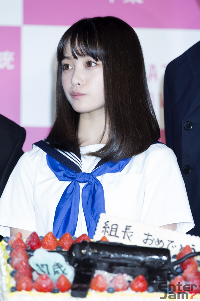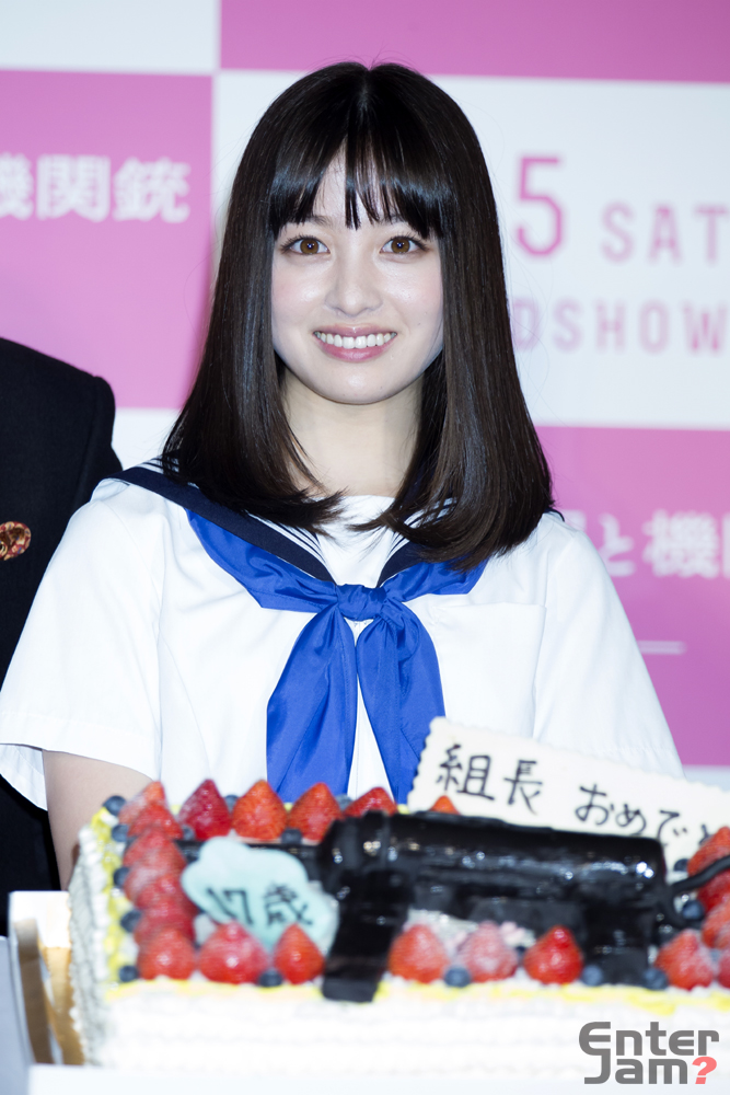 ここで本日【2月3日(木)】に17歳の誕生日を迎えた橋本環奈に対して、登壇者と会場の人たちでサプライズで誕生日を祝った。 機関銃をかたどった特製ケーキが運ばれ観客から「組長!お誕生日おめでとう!!」という掛け声がかけられると、「誕生日なんて気づいていなかった、こんなに大勢の方に祝われるのは初めてなのでとてもうれしいです!」とコメント。主演を務めさせていただき、また主題歌も担当させていただきました。この映画をきっかけに芯のある女優さんになっていきたいと思いますし、演技も歌ももっともっと頑張っていきたいです。」とこれからの抱負を元気よく語った。