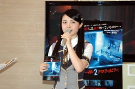 AKB48の姉妹グループのSKE48の大矢真那さん、矢神久美さん、加藤るみさんが“S(すごく) K(怖い)E(エンターテイメント)”の伝道師として映画「パラノーマル・アクティビティ2」のDVD&ブルーレイ発売記念イベントを行った。東京・Hanazono Roomに特設されたパラノーマルハウスで本作の短編版を鑑賞し、リアル超常現象を体験した。