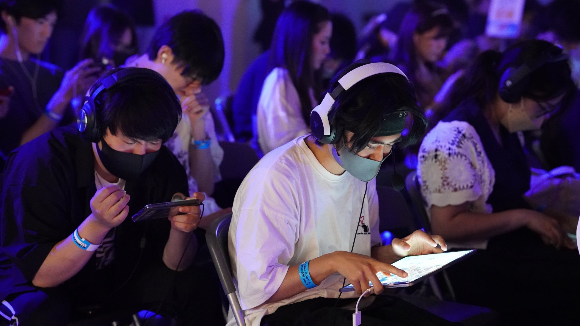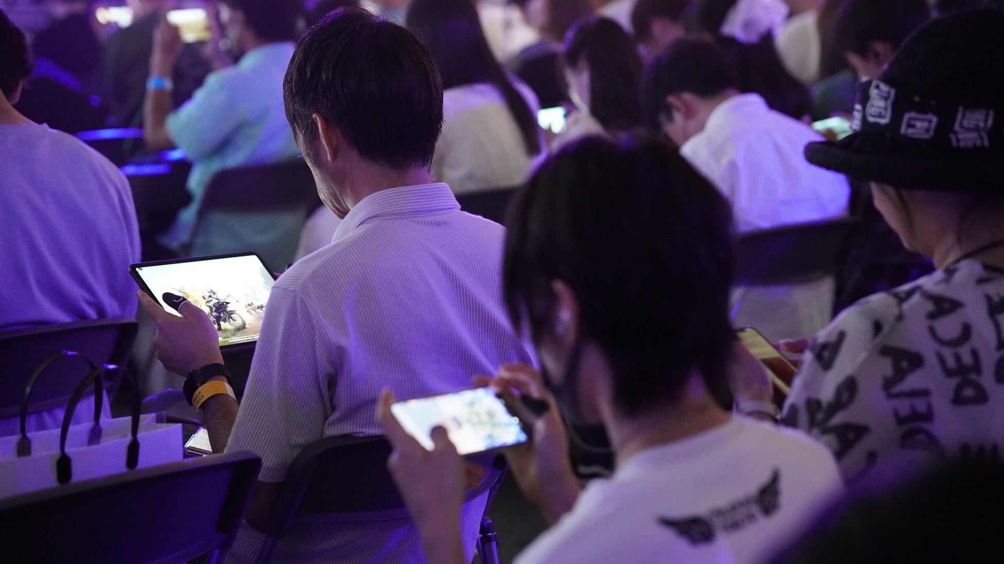 会場には、PUBG MOBILEの熱狂的なファンが大勢集まり、予定になかった方々も飛び入り参加するなど、盛況となりました。大会前には、「夏の大合戦 2023」のキービジュアルを映し出す大型スクリーンが参加者の入場を温かく迎えていました。