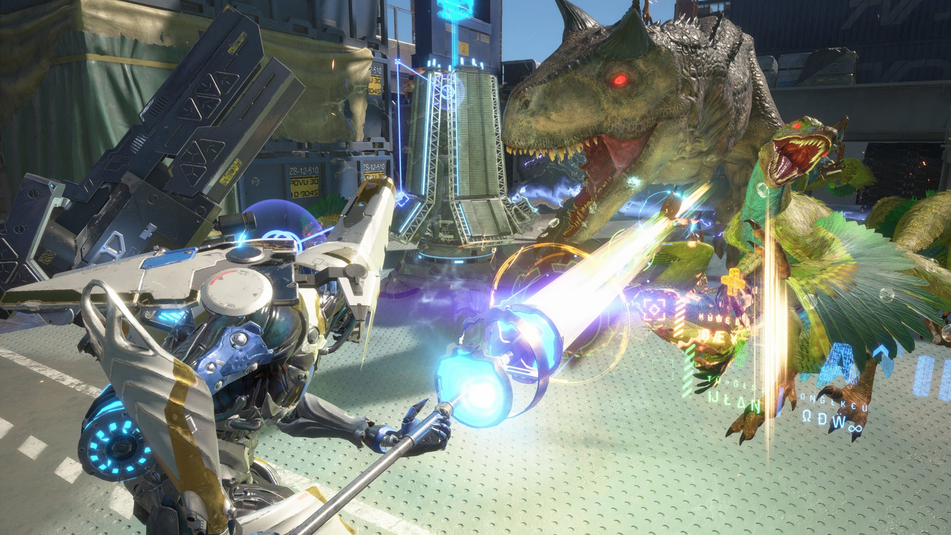 恐竜には視界不良効果、敵ファイターには全スキルを封じる効果を持つ爆発ドローンを放つ。・様々な効果を持つ「モジュール」もタイトルアップデートで追加モジュールは、エグゾスーツの体力や、武器のリロード速度を強化したり、エグゾスーツごとのアクティブスキルの性能を変化させたりする効果を持つパーツで、各スーツ最大3つまで装着できる。すべてのスーツに装着可能な「ベースモジュール」、主にスーツ固有の通常攻撃に作用する効果を与える「スーツモジュール」、スーツ固有のアクティブスキルの性能を変化させる「アクションモジュール」に、新たなモジュールを追加。※各スーツレベルの上昇によってアンロックし、ビックコインで交換できるようになります。