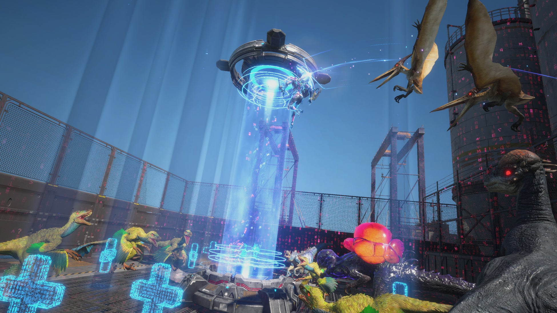最終フェーズになると、フィールドのどこかに脱出ゲートとなる「エスケープデバイス」が出現。超大量の恐竜がひしめき合う中、「エスケープデバイス」に飛び込むことができれば脱出成功となり、ミッション達成となる。「エスケープデバイス」が開いているのはわずかな時間のみなので、全員が脱出できるように味方と協力しよう。