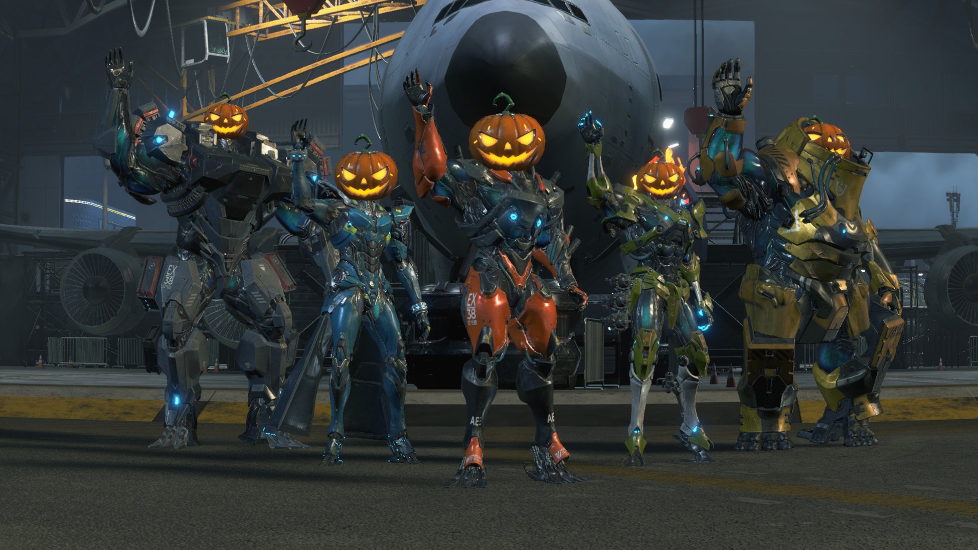 ハロウィンキャンペーン報酬:パンプキンヘッド(オリジナルエグゾスーツ10種のスーツスキン)・ホリデーキャンペーン2023年12月14日(木)12:00 JST ~ 12月27日(水)11:59 JST 予定