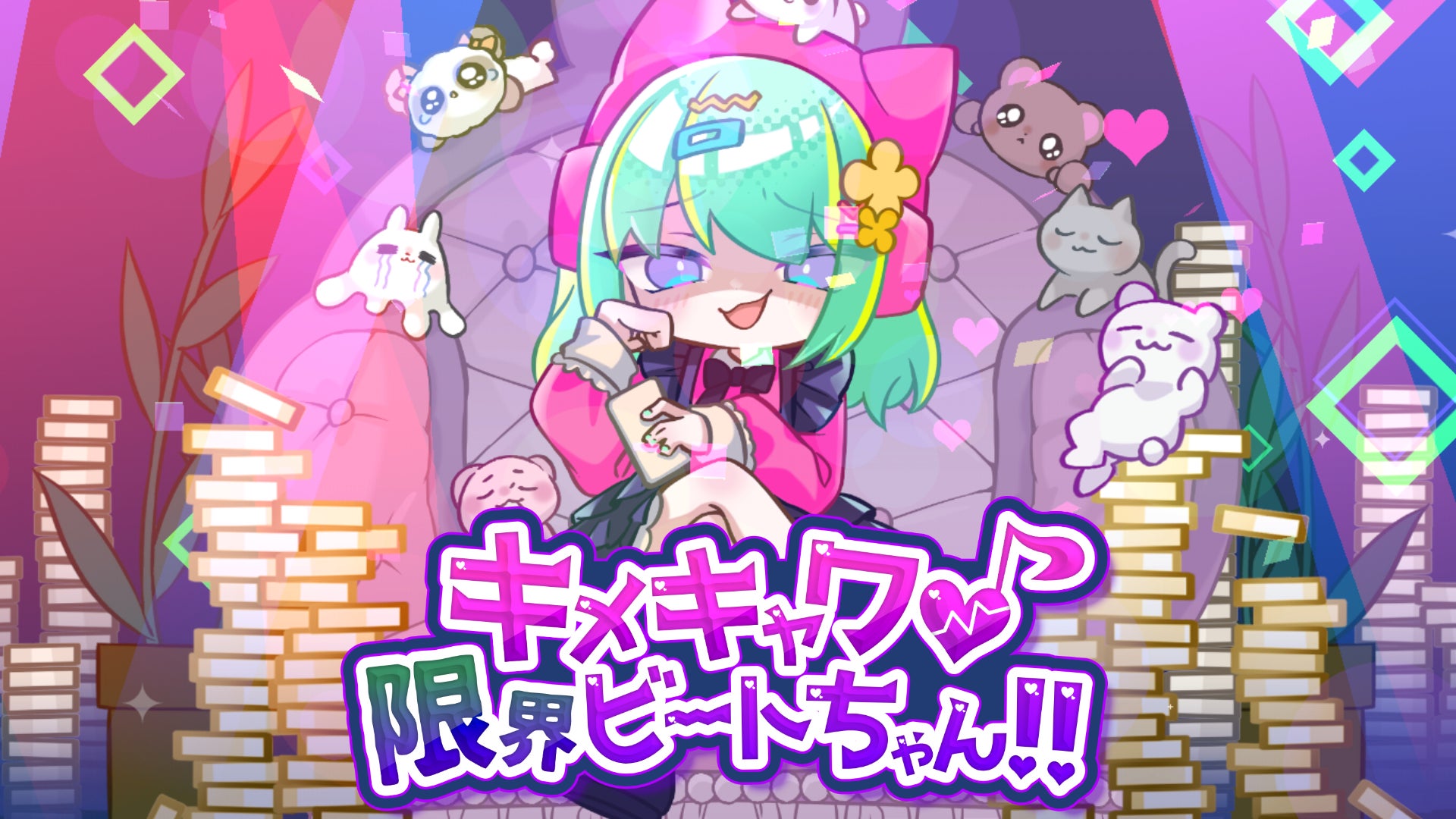 『キメキャワ(ハート)限界ビートちゃん!!』は、フルーツとモンスターを潰し、お給料で機能を開放していく限界リズムゲームです。