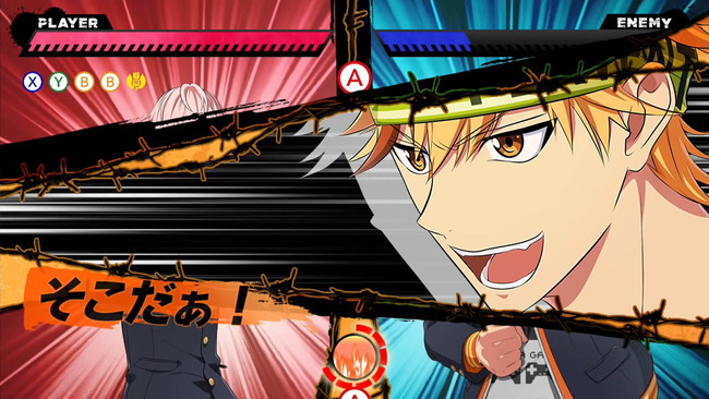 会話イベントで「メンチを切る」を選ぶと、タンカバトルに発展。表示されたセリフを覚えて、制限時間内に正確にボタンを入力することで、喧嘩バトルに突入します。喧嘩バトルでは、タイミング良くボタンを押して相手を攻撃し、勝利を目指します。