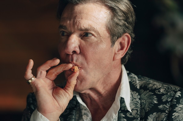 解禁されるシーン写真は合計11点。身体のラインを覆うファッションと視線を隠すサングラス、怪しげな箱を抱えて人目をはばかるように立ち去ろうとする<エリザベス>と、一転、自身の魅力を存分にアピール!カラフルポップなアイメイクで自信に満ち溢れた笑顔を振り撒く<スー>という対照的な2人の表情を捉えたカットのほか、スーをデビューさせて大金を稼ぐ!胡散臭いプロデューサー・ハーヴェイが、スーを口説き落とそうとする様子、あっという間にスターダムにのしあがったスーがハリウッドの成功の象徴<大看板>に見事掲出!だが、自分の分身とはいえ、心底喜びきれないエリザベスが、スーが荒らした部屋を陰鬱な雰囲気で一心不乱に片付ける姿、そしてゲスな笑顔がピッタリ張り付いた男たちの中心に陣取るハーヴェイなど、いずれも美と成功への執着が常軌を逸した行動を生むーハリウッドに渦巻く<闇>に捉えられた人々を切り取ったカットとなっております。