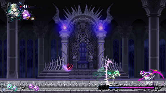 舞台はひとつの城から魔界全土へと拡張、ステージクリア型から探索型へと待望の進化を遂げた本作では、プレイヤーは性能の異なる二人のキャラクター「キリカ」「マーシャ」を使い分けながら、魔界を探索し武器を強化し、各地を統べるボス魔王たちとの戦いを繰り広げます。