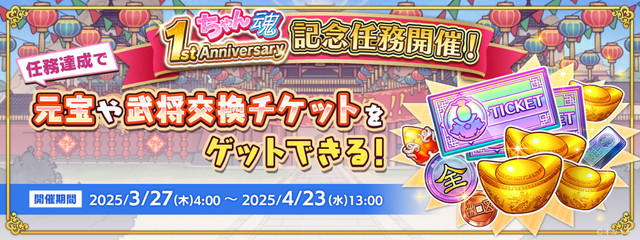 この度、3月26日(水)~4月30日(水)を「1st Anniversary キャンペーン」期間として、新たなイベントや特別な任務、限定ログインボーナス、ガチャなど、多数の施策を展開します。