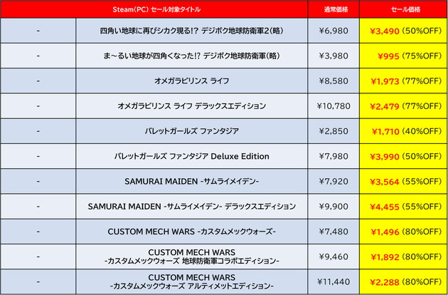 ディースリー・パブリッシャー(D3P) & Dogenzaka Lab の人気PCソフトがお買い得なSteamセール実施中!