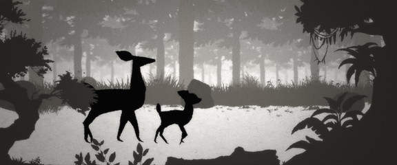 紙芝居のような可愛い切り絵風モノクロ映像で綴られるのは、母親を猟師に撃たれた子鹿が成長し、妻と子供と共に幸せな生活を送るも再び訪れる悲劇の物語。ゾンビと化したバンビの復讐劇が静かに幕を開けます。