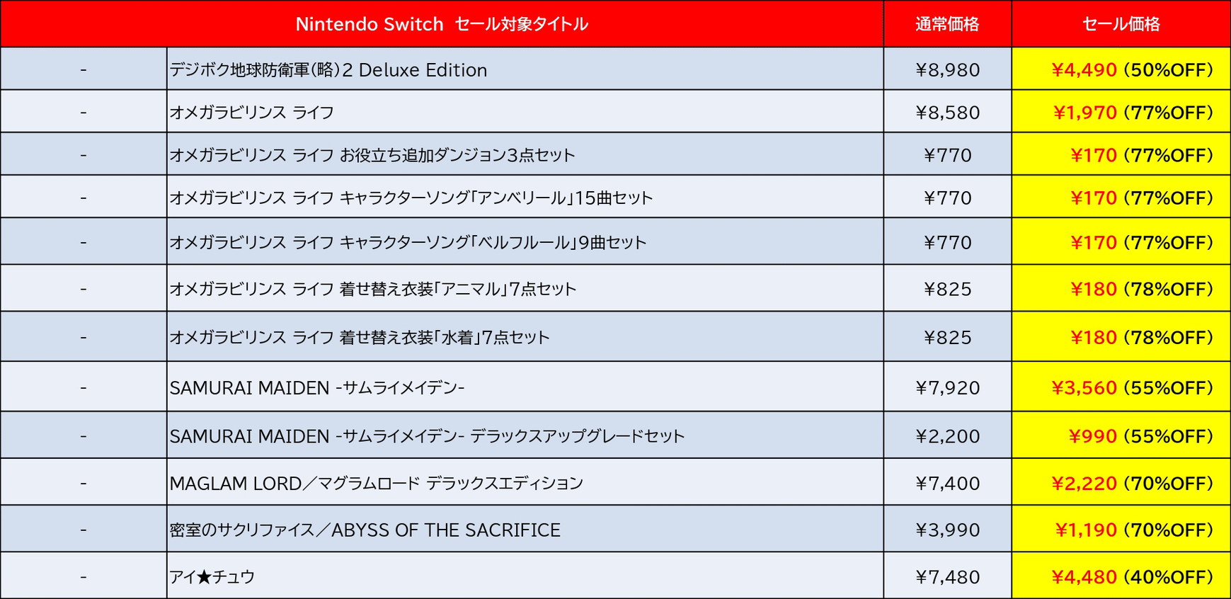 そのほかにも、D3Pの人気タイトルがセール価格で多数登場。この機会を見逃さず、気になるゲームを手に取ってみてほしい。