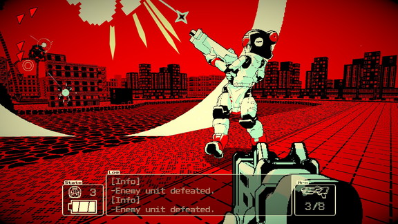 ロボットたちは本来、戦闘用ではないため耐久力が低く、プレイヤーはビルなどの遮蔽物を駆使しながら、敵の攻撃を回避し反撃の機会を狙う。