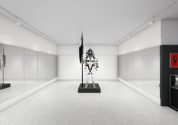 アートディレクター・新川洋司氏によるアートブックやラフスケッチ、ドールマンのプロトタイプモデル、ヒッグスのギターレプリカ、モーションキャプチャー使用アイテムなど、初公開資料を多数展示。