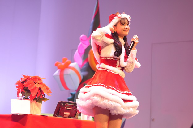 次にアイドル系の曲を歌うことになり、こちらも最近の曲か、昔の曲かをファンに聞いて選んだのは、今年のヒット曲「とくべチュ、して」(=LOVE)。グループの曲を1人で歌うのは大変なはずだが、これも完璧に歌い上げ、ファンも楽しそうにコールを送っていた。カラオケコーナーのラストは、クリスマスソングから1曲。ここでは「2曲考えてきたんですけど、自分の欲に任せるかどうするか……」と迷っていたのだが、ファンに後押しもあって、欲に従い選んだのは、越前リョーマ(CV.皆川純子)の「ふたりきりのMerry Christmas」。コンテンツへの愛も感じられる歌唱で、聖なる仲間たちと、ひと足早いクリスマス気分を味わっていた。
