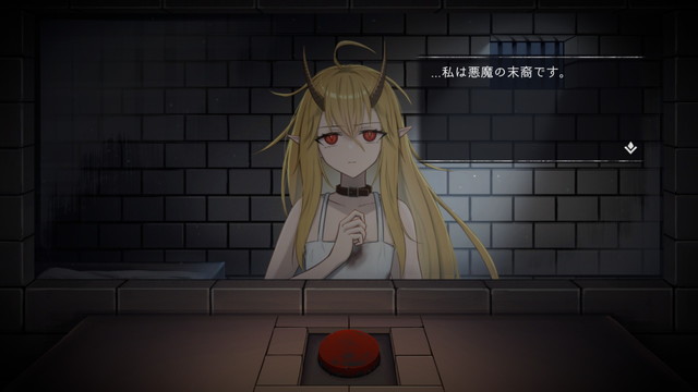 『イツカノヨル』は、5日後に処刑される運命にある竜族の少女と向き合いながら物語を進めていく、マルチエンド方式のノベルゲームだ。プレイヤーの目の前には赤色の「処刑ボタン」が置かれており、会話の途中であっても、いつでも押すことができる。
