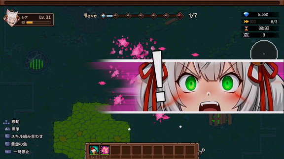 「赤い月の呪い」により弱体化したネコの魔法使いは、戦闘で得た経験値を使って魔法やスキルを強化していく。短剣投てき術やトルネードなど、視覚的にも楽しめるスキルが多数登場する。
