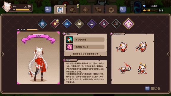 正義感の強い「ユリ」、武闘派の「アカネ」など、個性豊かなネコの魔法使いが登場。能力の異なるキャラクターを選び、自分のプレイスタイルに合わせたビルドを完成させることができる。