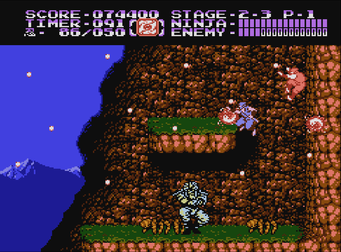 『忍者龍剣伝II 暗黒の邪神剣』は、1990年にテクモから8ビット家庭用ゲーム機向けに発売された横スクロールアクションゲーム。龍の忍者リュウ・ハヤブサが、邪神の復活を阻止するため、刀と忍術を駆使して戦う。