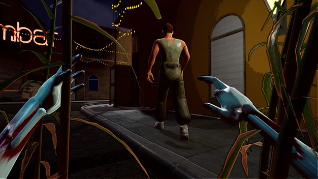 夜:ルイジアナの街を徘徊し、新たな「仕入れ先」を求めてハンティング。暗い路地で人間やライバルハンターを避けながら素材を収集