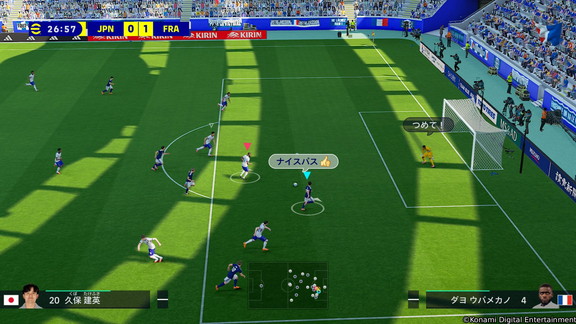 ピッチボイス/かんたん操作:選手の状況に応じたコマンドガイドや味方の声が吹き出しで表示され、次のアクションが一目で分かります。かんたん操作ONでパスやドリブルをAIがアシスト。