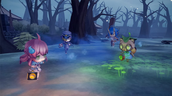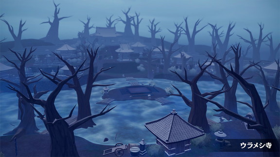 今回配信されるのは、期間限定マップ第1弾「冬模様のウラメシ寺」。フリーマッチにてプレイ可能となっており、雪が薄く積もったウラメシ寺を舞台に、オバケの世界が冬景色へと変化する。
