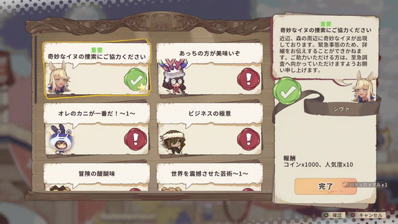 サブミッション形式で展開される依頼を通じて、冒険やパン屋経営に明確な目標が追加される。