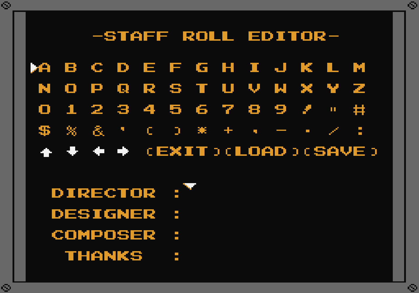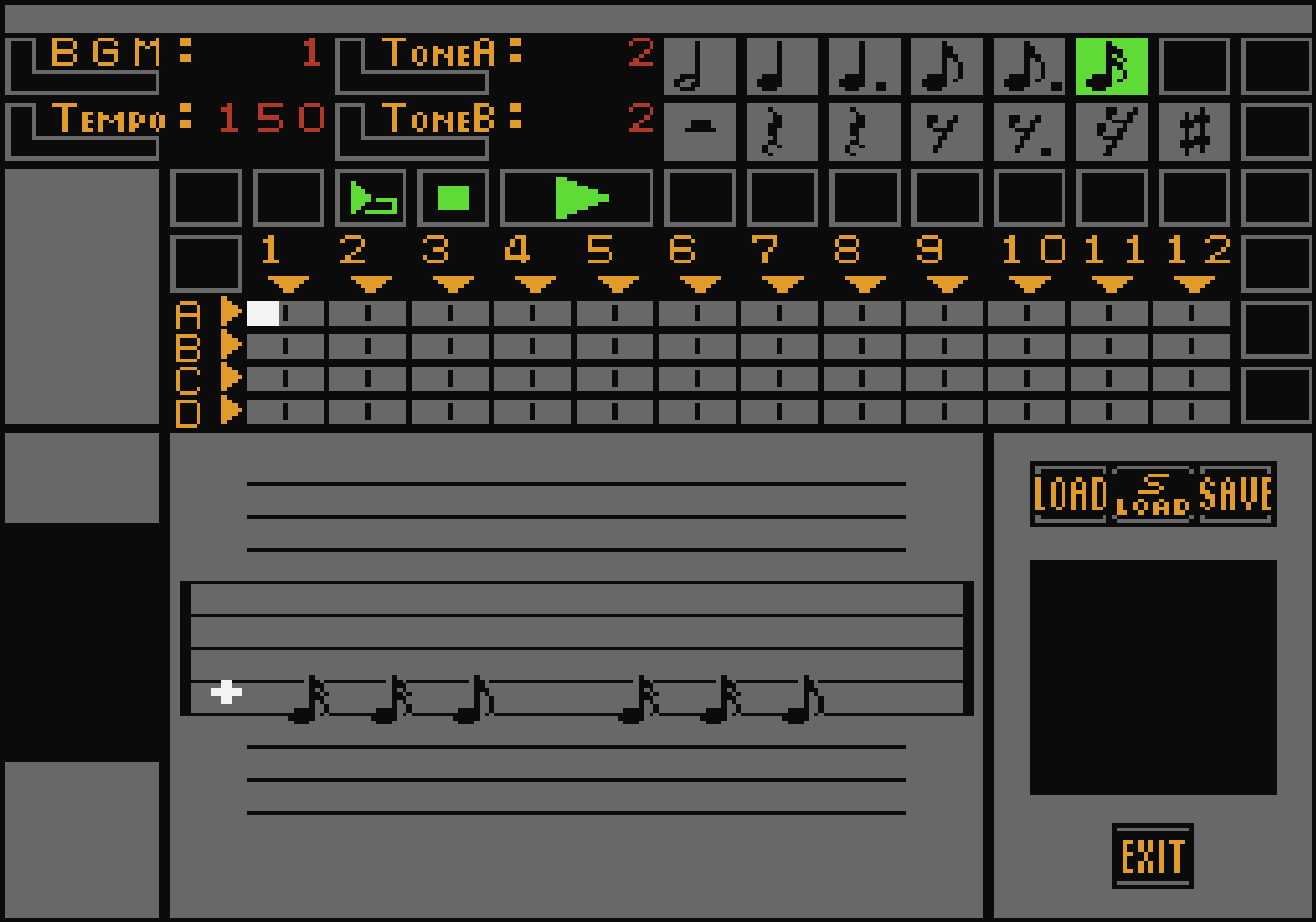『絵描衛門(デザエモン)』は、ドット絵によるキャラクターや背景のデザイン、8ビット音源による音楽エディット機能を備えたゲーム制作ソフト。
