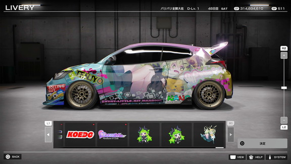 カテゴリ別にパーツの付け替えが可能なほか、各種バイナル、ステッカーを用いたカスタマイズ機能も実装されている。