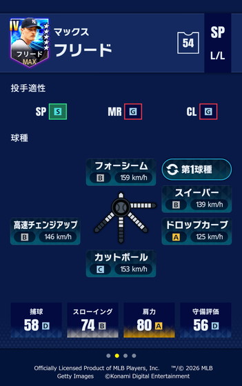 球威・制球・スタミナが「A80」に調整