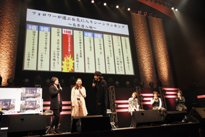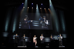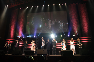 歌が終わり、鳴り止まない拍手の中、土方と千鶴の会話が続く…。土方が「俺たちがまだ浪士組と名乗っていた頃の話を聞いてくれるか?」と語ると、スクリーンに新アニメプロジェクトの文字が! そこでTVアニメ『薄桜鬼 黎明録』がこの夏にスタートすることが発表! さらにOVA『薄桜鬼 雪華録 第六章 千景編』(2012年6月)の発表が続く。立て続けの嬉しいニュースに、観客も興奮を隠しきれない様子だった。