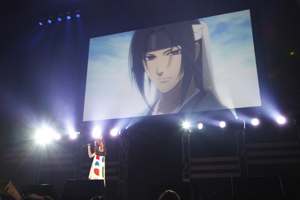 会場が暗転すると、吉岡亜衣加が再び登場。TVアニメ1期のオープニング曲「十六夜涙」を。やはり『薄桜鬼』を代表する、ものすごいパワーを持っている曲。会場もサイリウムを振りながら盛り上がっていた。