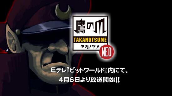 今回、2009年の『秘密結社 鷹の爪 カウントダウン』 以来、3年ぶりの新TVシリーズ『秘密結社 鷹の爪 NEO』をNHK Eテレで放送中の人気番組「ビットワールド」内のコーナーコンテンツとして、シリーズ初の全国放送。今までの根強いファン層である20代・30代に加え、「ビットワールド」を視聴する小中学生を新たなファンとして獲得していく。