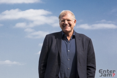 いまは亡きNYのワールドトレードセンターさながらに東京湾を見下ろせる高さ約200mの聖路加ガーデンのタワー屋上で行われた<天空>記者会見。その倍以上ある411mのツインタワーでフィリップ・プティが空中闊歩に挑んだ日を思わせる晴れやかな天気の中、約2年ぶりの来日を果たしたロバート・ゼメキス監督、そしてプロデューサーのジャック・ラプキー氏が登壇した。