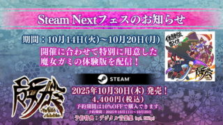 【以下プレスリリース文掲載】2D横スクロールアクションゲーム『魔女ガミ-The Witch of Luludidea-』の最新情報をお届けします!■Steam体験版をリニューアル!2025年12月19日(金)よりSteam版『魔女ガミ』の体...